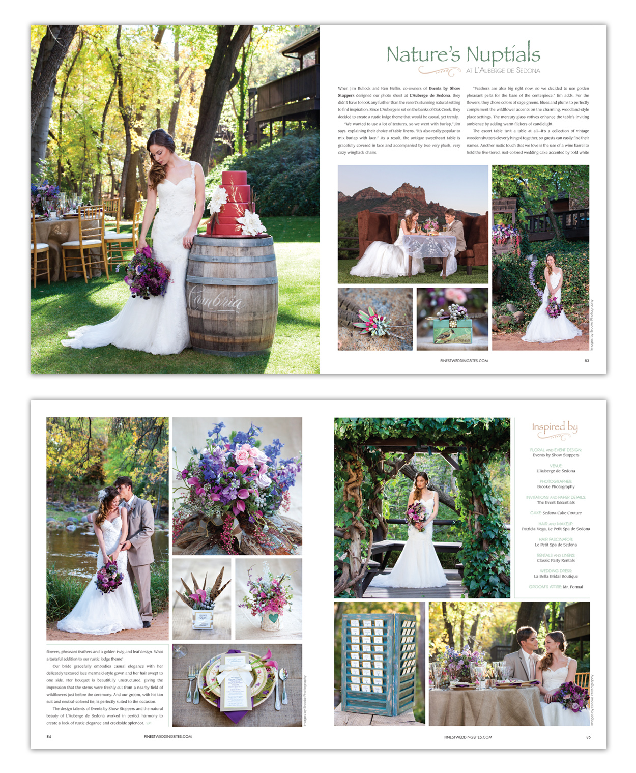 The team at Events By Show Stoppers is honored to be featured in the lovely new issue of Arizona's Finest Wedding Sites and Services Magazine. If you are a bride-to-be, this magazine is invaluable in selecting just the right venue and vendors to make your vision come to fruition. Many Sedona Wedding Services members were involved with this cover shoot and featured article. Pick up your copy today and see our beautiful feature on pages 83-85. … [Read more...]